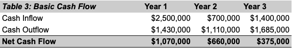 In this case, we’ll assume OceanFlow follows a three-year progression: